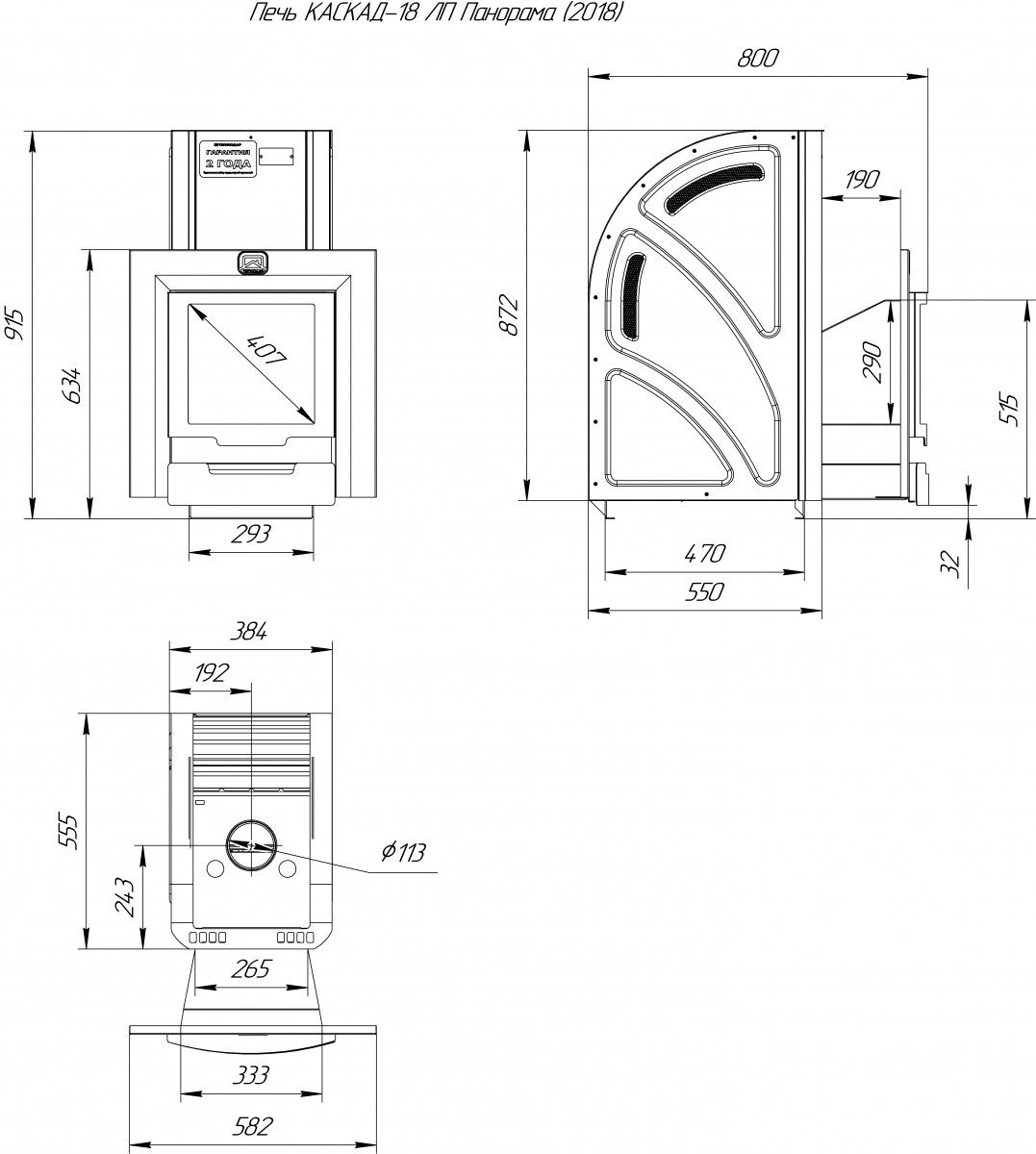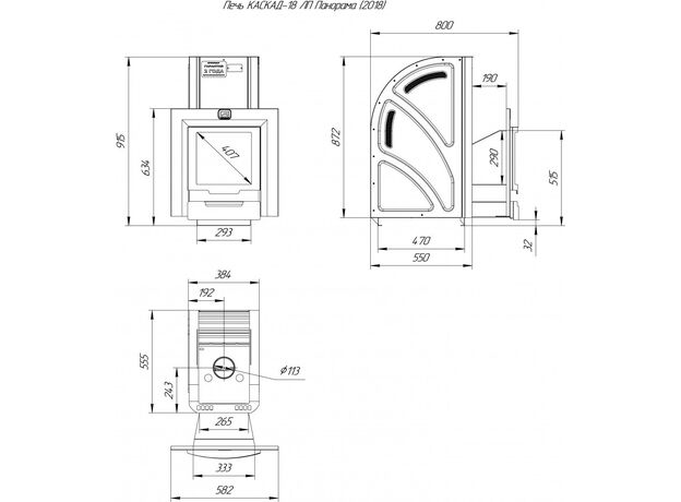 Печь Теплодар Каскад-18 ЛП Панорама 2018 без дверцы
