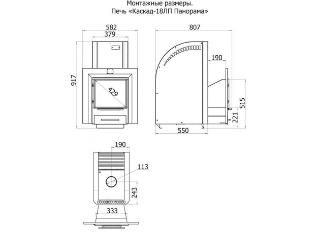 Печь Теплодар Каскад-18 ЛП Панорама без дверцы