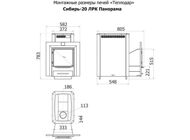 Печь Теплодар Сибирь-20 ЛРК Панорама без дверцы