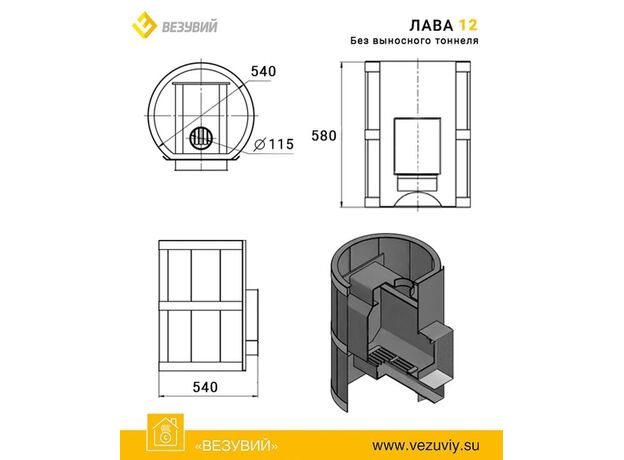 Печь Везувий Лава 12 ДТ-3 БВ