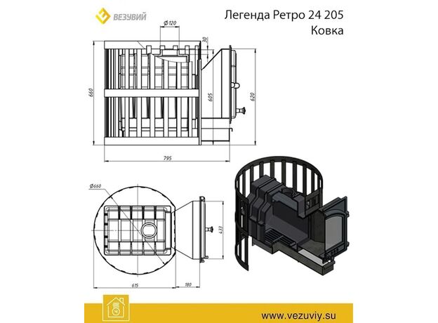 Печь Везувий Легенда Ретро Ковка 205