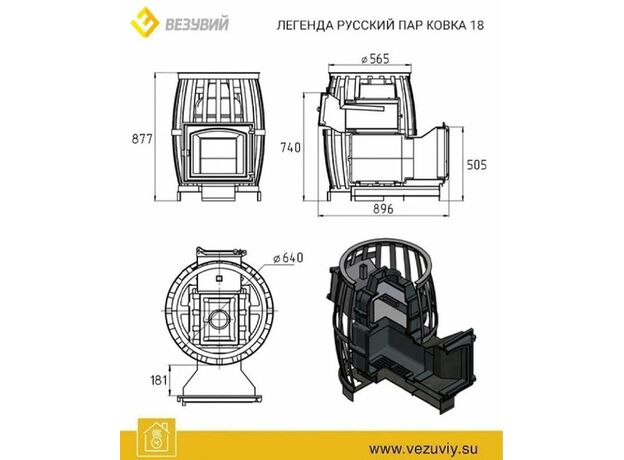 Печь Везувий Легенда Русский Пар Ковка 18-270