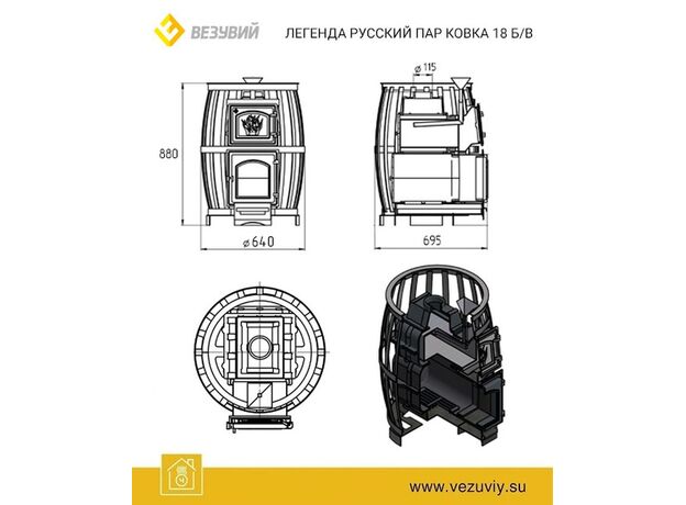 Печь Везувий Легенда Русский Пар Ковка 18-271 бв
