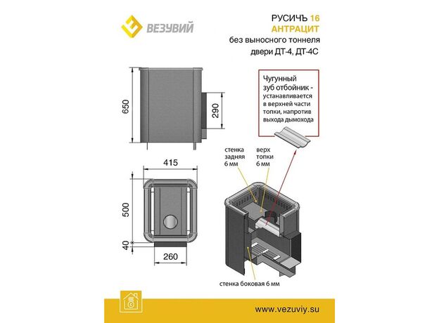 Печь Везувий Русичъ Антрацит 16 ДТ-4С БВ