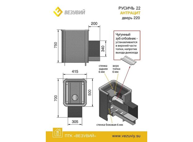 Печь Везувий Русичъ Антрацит 22-220