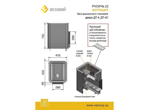 Печь Везувий Русичъ Антрацит 22 ДТ-4 БВ