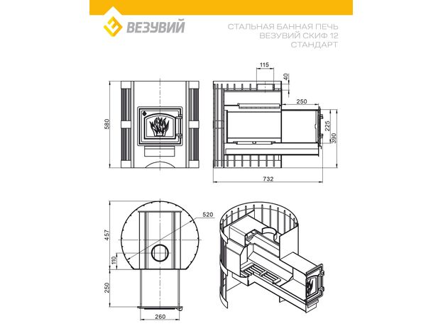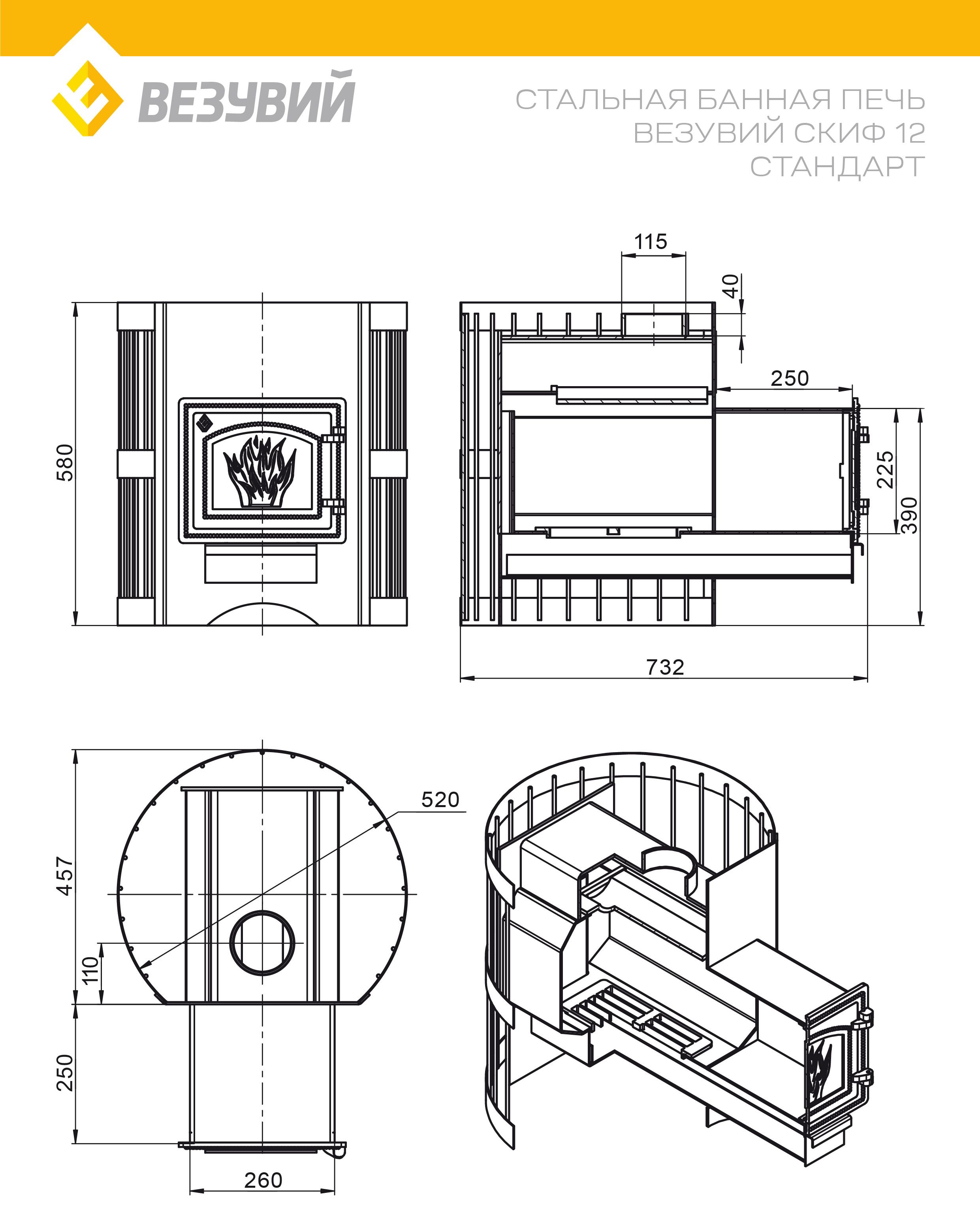 Печь Везувий Скиф Стандарт 12 ДТ-3