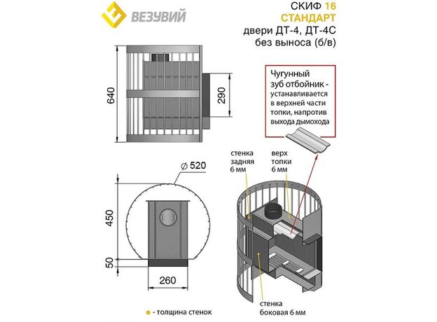 Печь Везувий Скиф Стандарт 16 ДТ-4С БВ
