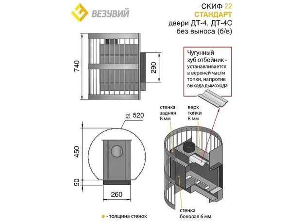 Печь Везувий Скиф Стандарт 22 ДТ-4 БВ