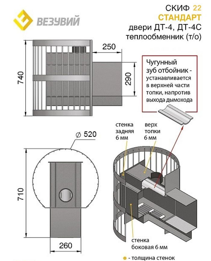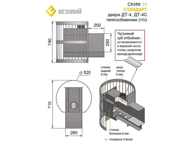 Печь Везувий Скиф Стандарт 22 ДТ-4С с ТО