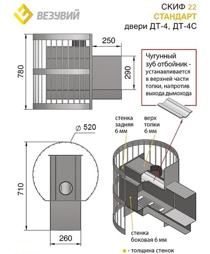 Печь Везувий Скиф Стандарт 22 ДТ-4С