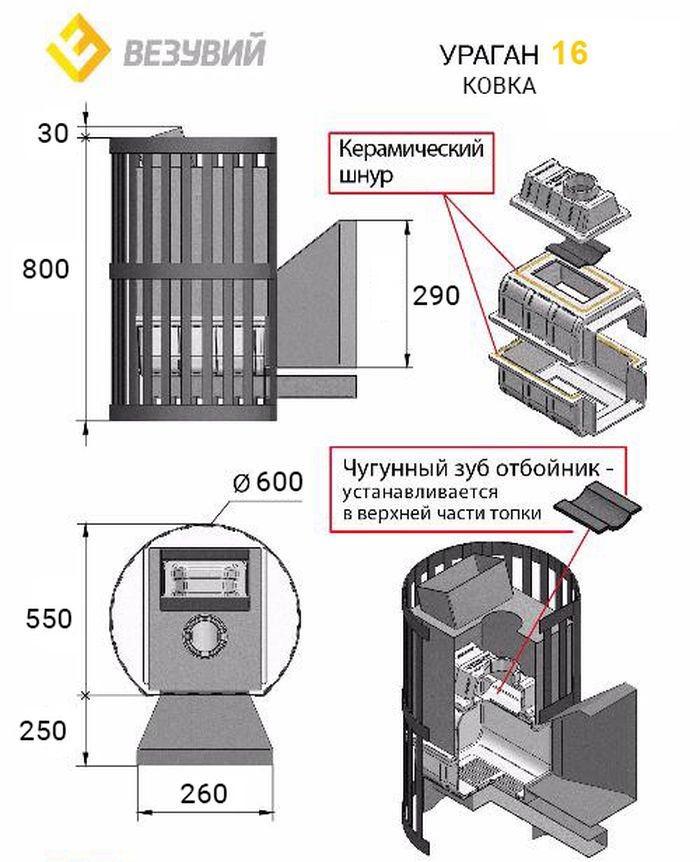 Печь Везувий Ураган Ковка 16-205