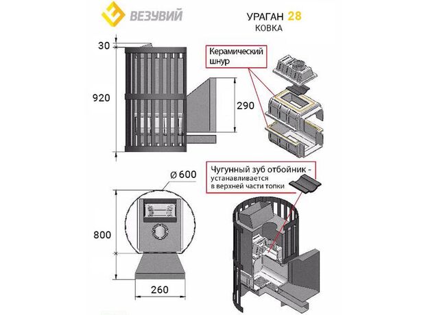 Печь для бани Везувий Ураган Ковка 28-271