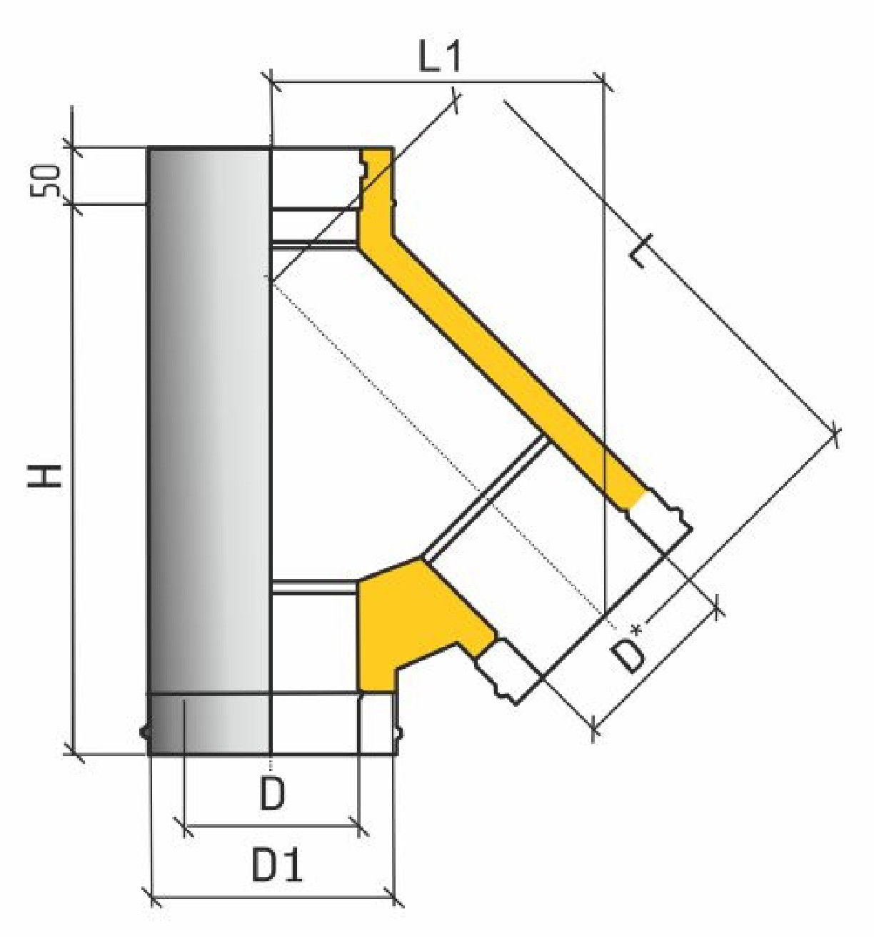 Тройник TРT-Р 45° d180/240 430-0,8