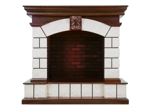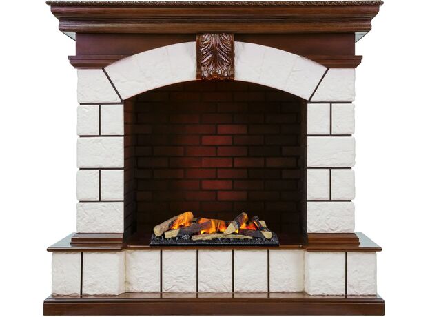 Обрамление выполнено из материала, имитирующего натуральный камень. Широкая столешница позволит разместить на камине предметы декора. Портал выглядит массивным и станет ярким акцентом гостиной, кабинете или столовой.