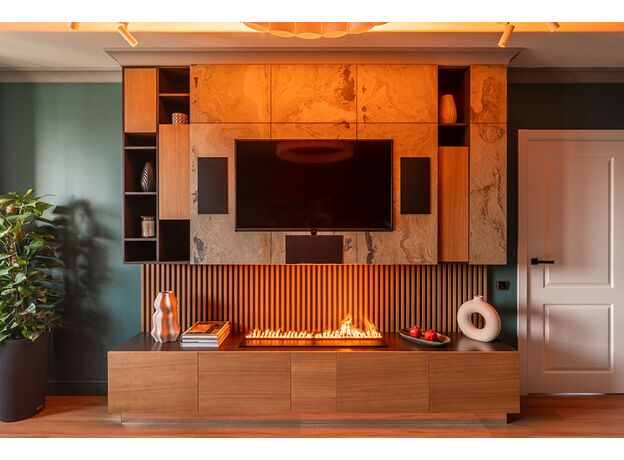 В очаге Cassette 1000 не используются дрова или какое-либо другое декоративное топливо. Вы можете добавить декор по своему вкусу (камни, кристаллы, угли, дрова) или использовать его в первоначальном виде, это смотрится очень оригинально и стильно. Благодаря инновационному техническому решению камин работает на фильтрованной воде и может быть подключен напрямую к действующему водопроводу, что позволяет использовать камин длительное время без дозаправки. Пламя в камине – это обычный пар, подсвеченный галогеновыми лампами. Камин пожаробезопасен, не обжигает и увлажняет воздух в помещении. Для его установки не требуется установка дымохода или вытяжки, камин не выделяет вредных примесей и продуктов горения, а после использования не оставляет копоти и золы.Камином можно управлять при помощи Bluetooth пульта ДУ – включать и выключать, менять интенсивность пламени. Очаг предназначен для встроенного размещения в квартире или загородном доме, камин также украсит холл отеля, бизнес-центра, ресторана или торгового центра.