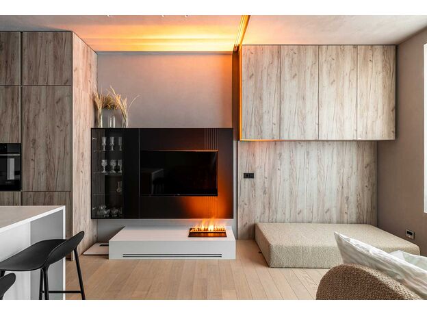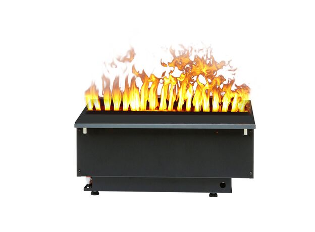 В очаге Cassette 500 не используются дрова или какое-либо другое декоративное топливо. Вы можете добавить декор по своему вкусу (камни, кристаллы, угли, дрова) или использовать его в первоначальном виде, это смотрится очень оригинально и стильно. Благодаря инновационному техническому решению камин работает на фильтрованной воде и может быть подключен напрямую к действующему водопроводу, что позволяет использовать камин длительное время без дозаправки. Пламя в камине – это обычный пар, подсвеченный галогеновыми лампами. Камин пожаробезопасен, не обжигает и увлажняет воздух в помещении. Для его установки не требуется установка дымохода или вытяжки, камин не выделяет вредных примесей и продуктов горения, а после использования не оставляет копоти и золы.Камином можно управлять при помощи Bluetooth пульта ДУ – включать и выключать, менять интенсивность пламени. Очаг предназначен для встроенного размещения в квартире или загородном доме, камин также украсит холл отеля, бизнес-центра, ресторана или торгового центра.
