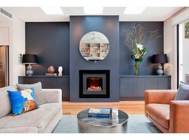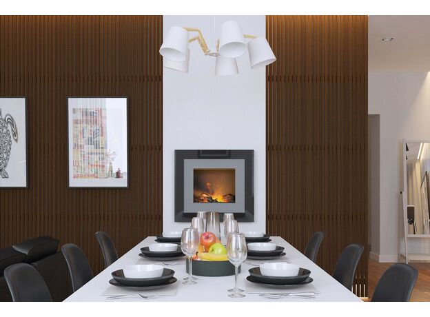 Очаг Redway – это настенный камин с эффектом реального пламени Opti-Myst. Двойное обрамление очага, выполненное в насыщенном глянцевом черном и сером цветах, делает камин эффектным и стильным.