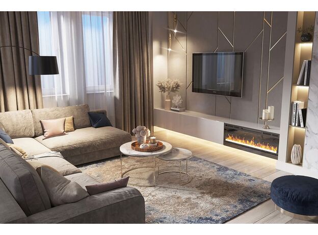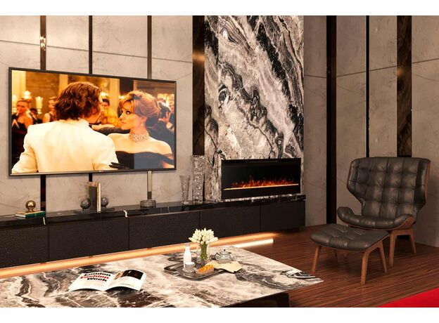 Длина электроочага Synergy составляет 50 дюймов. Передняя черная глянцевая панель, выполненная из высокотехнологичного пластика, отлично впишется в любой современный интерьер в стиле Hi-Tech, минимализм, Urban.