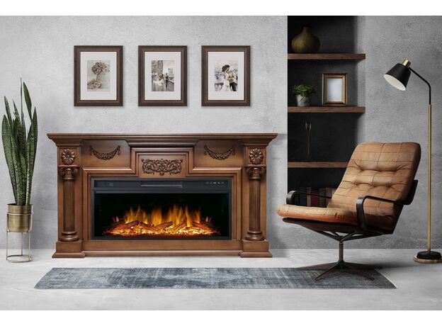 Портал London представлен в цвете слоновая кость с патиной. Строгий, классический стиль с элементами античного декора – резной орнамент, размещенный на фронтальной поверхности, ярко выраженные колонны по бокам.Обрамление для камина сделано из высококачественных материалов.Изысканный, эффектный дизайн портала позволяет интегрировать его практически в любой классический интерьер.К порталу London подходят электрические очаги Royal Flame.