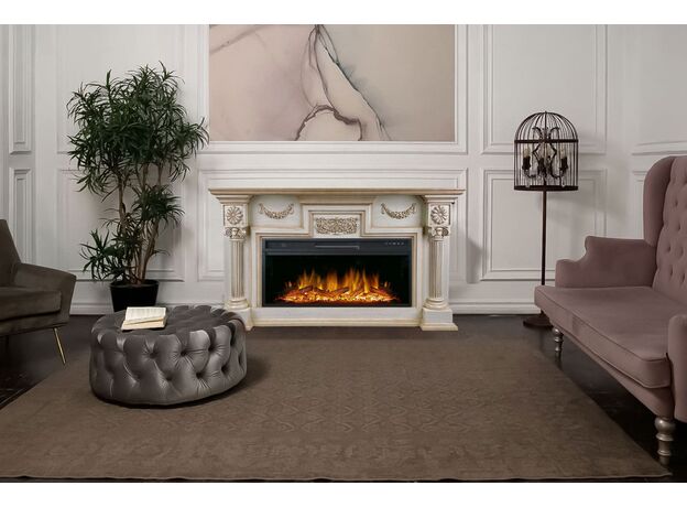 Портал London представлен в цвете слоновая кость с патиной. Строгий, классический стиль с элементами античного декора – резной орнамент, размещенный на фронтальной поверхности, ярко выраженные колонны по бокам.Обрамление для камина сделано из высококачественных материалов.Изысканный, эффектный дизайн портала позволяет интегрировать его практически в любой классический интерьер.К порталу London подходят электрические очаги Royal Flame.