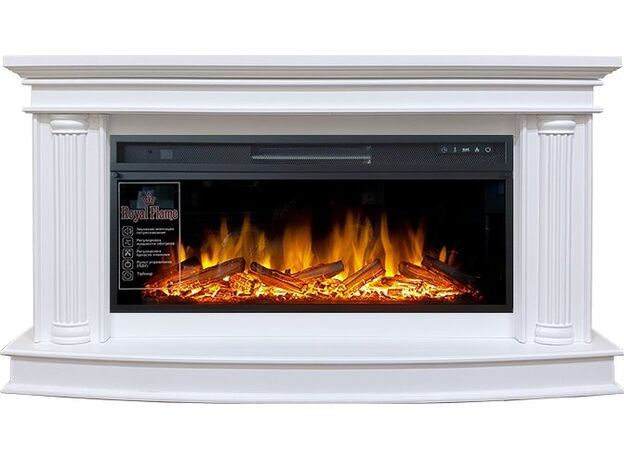 Rome, портал от Royal Flame, выполненный в классическом дизайне. Украшен по бокам изящными античными колоннами. Строгие прямые линии и благородные цветовые решения (белый и темный дуб) делают его идеальным вариантом для практически любого интерьера – классика, античность, авангард и др. В портал встраивается электрический очаг Royal Flame, в котором реализована технология живого огня. Эффекта удается достичь с помощью светодиодной подсветки, а также встроенных звуков имитации потрескивания горящий дров.
