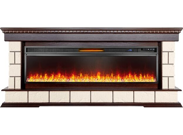 Портал Shateau выполнен из дерева и искусственного камня светлого оттенка. Обладает широкой столешницей, которую можно использовать как дополнительное пространство под элементы декора. Смотрится необычайно стильно и изысканно. Зона очага располагается на постаменте, что выгодно подчеркивает красоту реалистичного пламени. Портал сочетается с электрическими очагами Royal Flame, в которых применяется технология воспроизведения реалистичного пламени. Такой каминокомплект станет изящным дополнением интерьера, наполнит помещение атмосферой тепла и уюта.