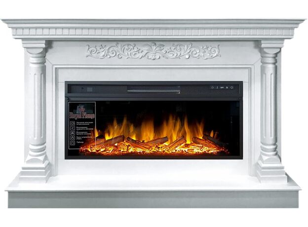 Портал Sicilia выполнен в ярко выраженном античном стиле. Фронтальная часть над очагом украшена изящным барельефом с флористическим декором. Широкая столешница и массивные резные колонны подчеркиваю зону очага. Благодаря броскому дизайну станет настоящим украшением дома. Портал совместим с электрическими топками Royal Flame, пламя в которых стилизовано под настоящее. Такой каминокомплект прекрасной подойдет для установки в интерьере спальни, гостиной или холла.