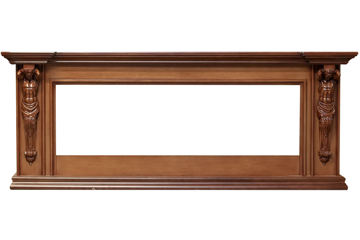 Sparta 60 – деревянный линейный портал в античном стиле. Боковые колонны декорированы объемными фигурами атлантов, поддерживающими выступающую вперед каминную полку. Портал больше походит для установки в просторных помещениях. Гармонично впишется практически в любой классический интерьер.Sparta 60 совместим с линейными очагами Vision 60 LED/LOG LED от компании Royal Flame, в сочетании с которыми будет создавать оригинальный каминный комплект, объединяющий строгую античность и современные технологии.