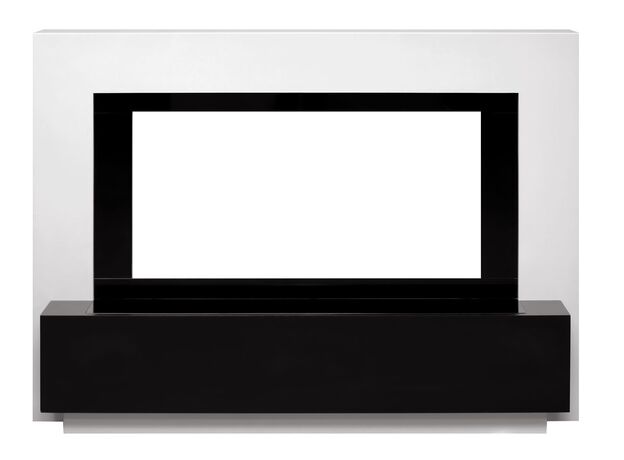 Портал Stockholm от бренда Royal Flame представлен в черно-белом цветовом решении. Фронтальная сторона дополнена выступающей вперед вставкой, которая может использоваться как дополнительное пространство для предметов декора.