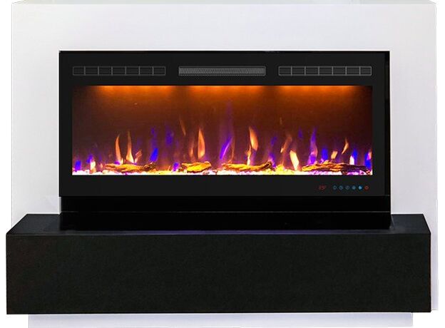Портал подходит под линейные электрические очаги бренда Crystal 36/40. Черное глянцевое стекло отражает яркие языки реалистичного пламени Royal Flame.