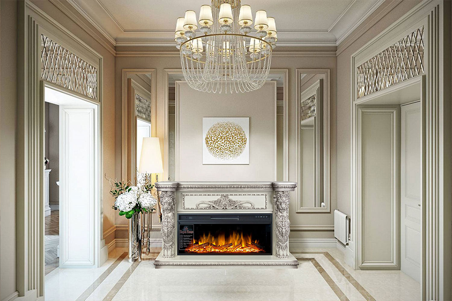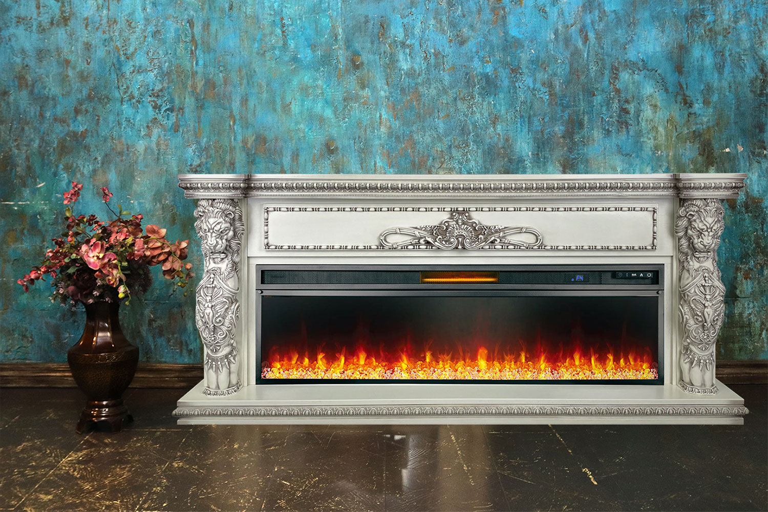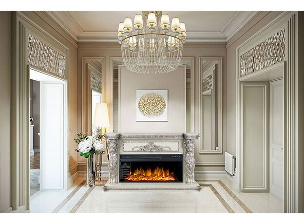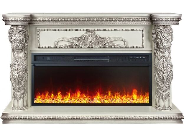 Портал Windsor – элегантная модель с богатым ярким декором, выполненная из высококачественных материалов. Колонны украшены образами необычных мифических существ с львиными головами, размещенными фронтально. Зона над очагом декорирована изысканным резным орнаментом.Эффектный дизайн портала позволяет интегрировать его практически в любой классический интерьер. К порталу подходят электрические очаги Royal Flame с реалистичным пламенем и функцией обогрева, которую можно включать лишь по мере необходимости, благодаря чему камин, в отличие от дровяных аналогов, подходит для круглогодичного использования.