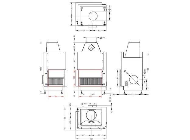 932 мм