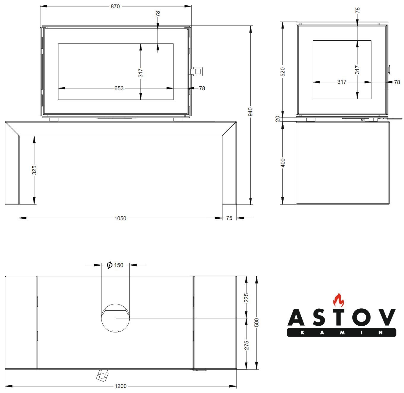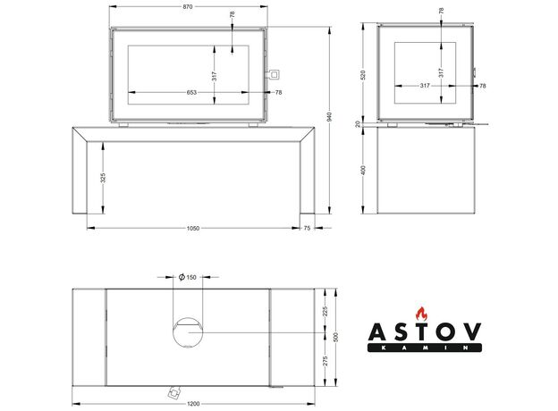 Печь Astov КУБ 3С 800 на подиуме