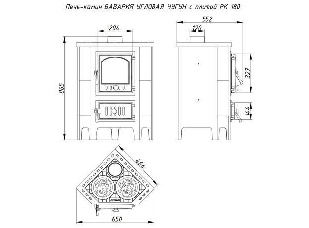 Печь EcoKamin Бавария Угловая Чугун с плитой