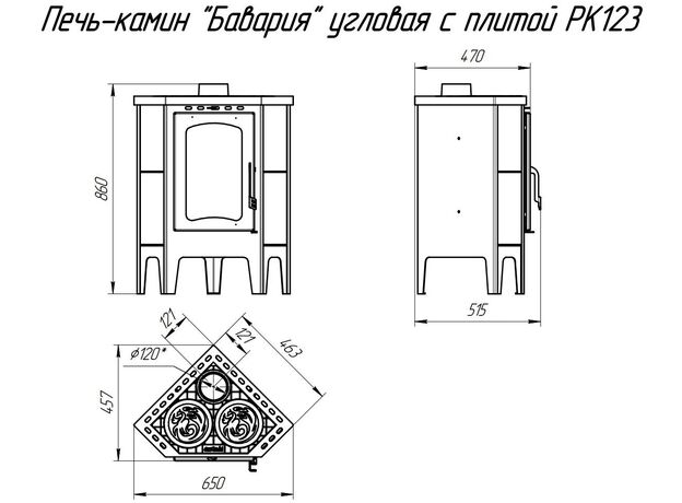 Печь EcoKamin Бавария Угловая с плитой