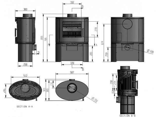 Диаметр дымохода: