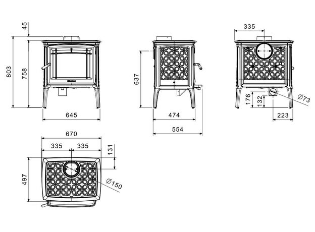 Диаметр дымохода: