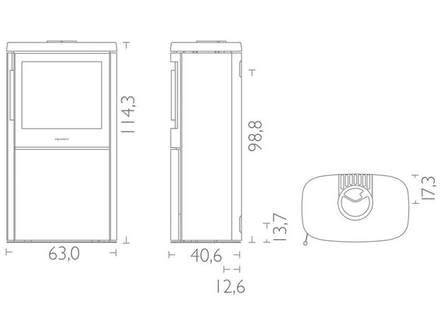 - Габариты - оптимальные. На мой взгляд конечно. Кто-то из вас наверняка захочет поставить себе самую большую печь-камин, которую только возможно отыскать в магазине. Я не гонюсь за размером, для меня больше важны пропорции и те характеристики, которых позволяет добиться умеренная по размеру камера горения. Итак, Ширина - 63см, Глубина - 41см. По высоте есть три варианта. 85см, 114см и 139см. Все хороши, все выглядят достойно. Выбор высоты зависит скорее от общего дизайна помещения и от высоты потолков. Для моих 2,8м оптимально встала средняя модель 114см по высоте.