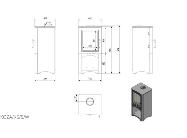 Печь Kratki Koza K5 с дровником
