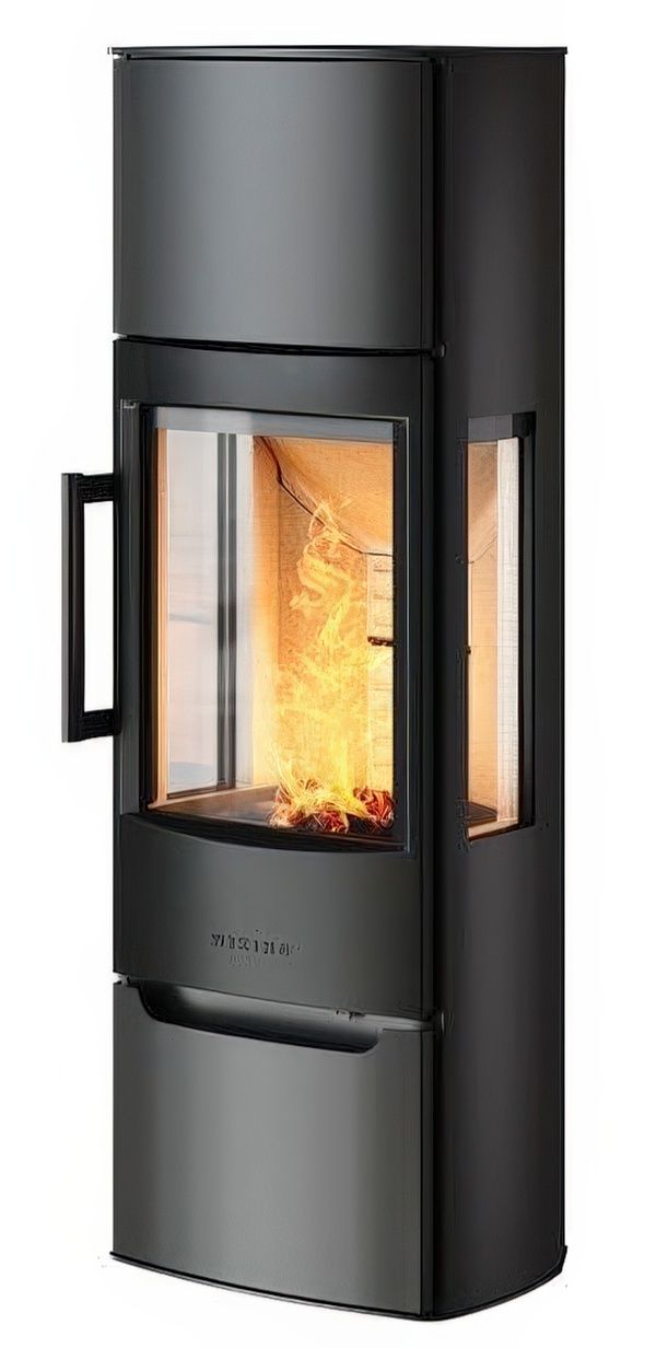 Безопасна. Европейский сертификат подтверждает возможность установки печи на относительно небольшое расстояние даже до горючих материалов. 20-25см от деревянных стен без необходимости использовать дополнительные изоляционные материалы. От панорамных стёкол без дополнительной изоляции мы устанавливаем Wiking Miro на расстоянии в 30-40см. Важно, что случайное касание печи будет для вас и ваших близких безопасным. Температура у печей Wiking на наружных стенках редко превышает 100-120 градусов, что как минимум в три раза меньше, чем температура классических чугунных «буржуек».