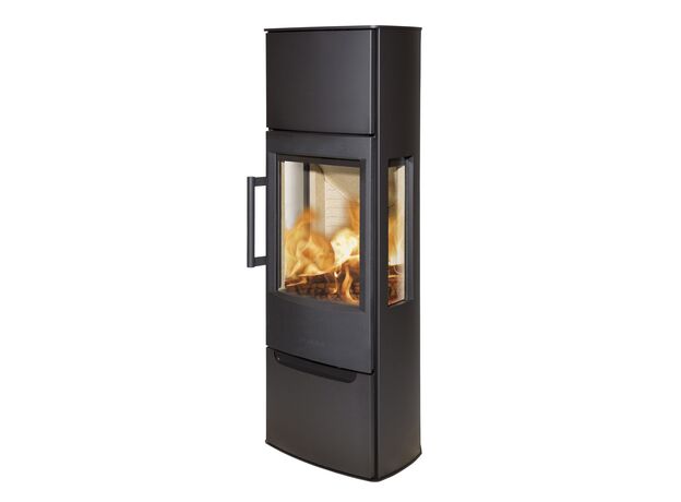 Качественная скандинавская печь с большим стеклом и умеренной мощностью.